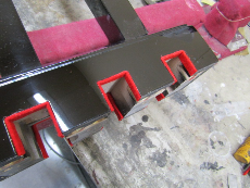 ペダル窓の赤いフェルトは、変色やすり減りが見られたので全て剥がし、新しいものに交換しました。 ペダルが外された状態の3つの窓はかわいらしデザインだなと思います!