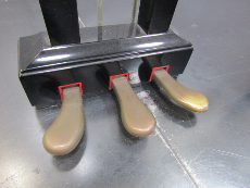 現在、ピアノアトリエでは店頭販売用のグランドピアノを整備中です。 今回は、ペダルアッセンブリーの再生作業をご紹介させていただきます。 みなさんのご家庭のピアノもペダルや蝶番などの金属類は少しづつ変色したり、錆びが出たりする事があります。 このピアノもペダルは変色していて、突き上げ棒も酷く錆びています。